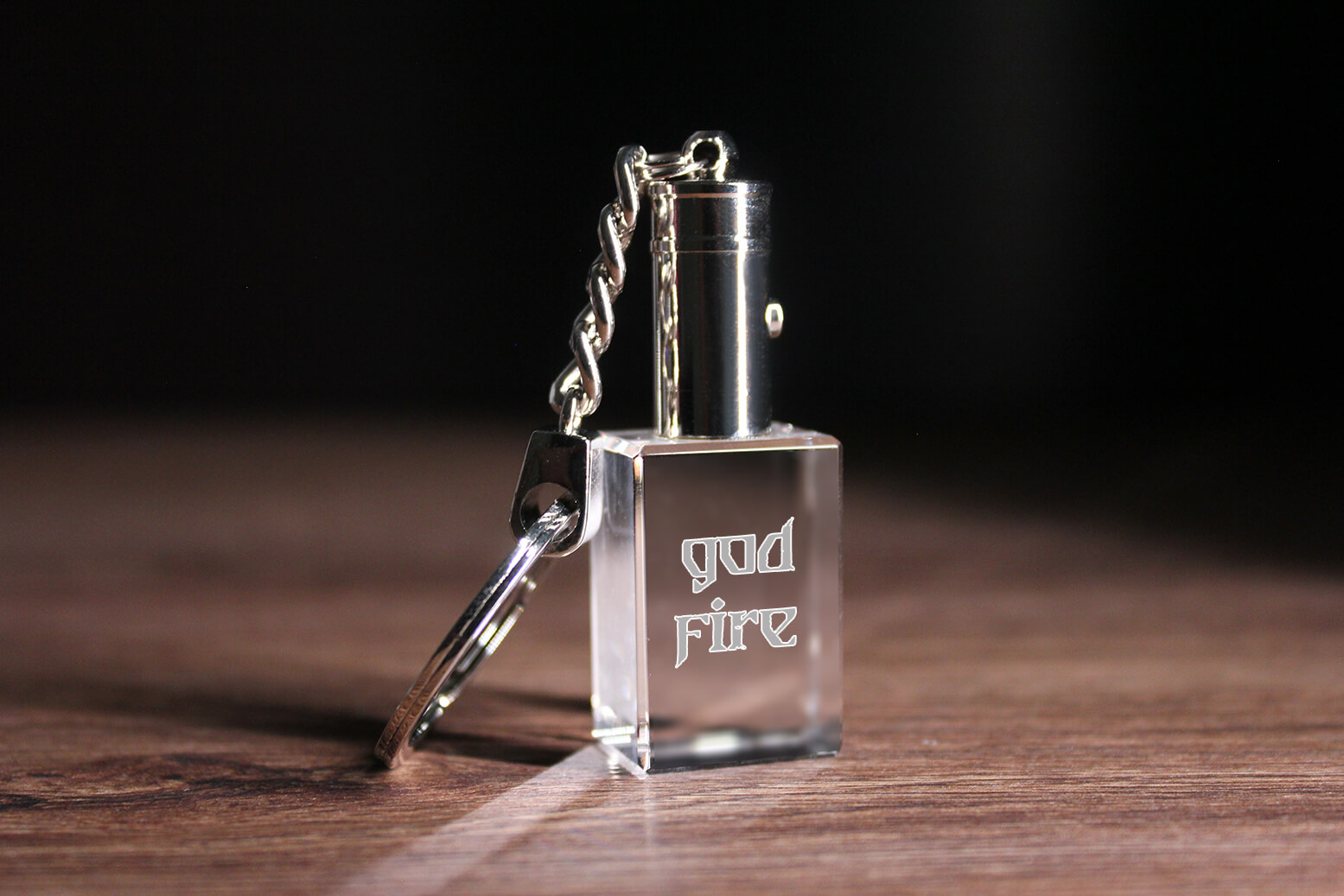 Beleuchteter LED-Schlüsselanhänger in den Farben Weiß, Rot, Blau und Grün lieferbar.